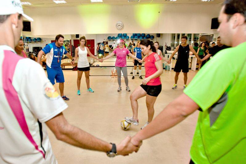 Toque de bola, passe, cabeceio. Os fundamentos do futebol migraram dos gramados para as salas das academias. Em vez de gols, a intenção é melhora do preparo físico, com fortalecimento muscular, aumento da resistência e alto gasto calórico.