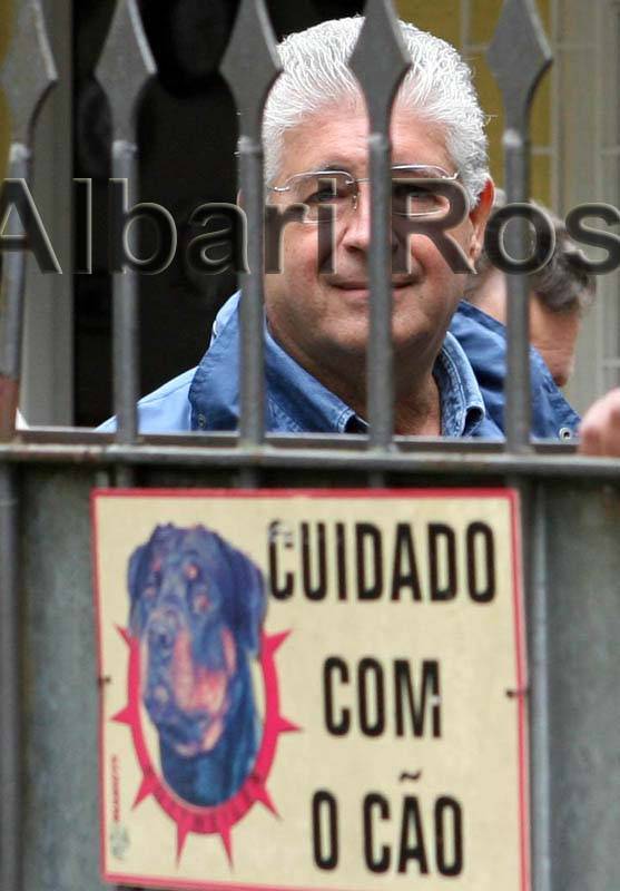Ex-governador Roberto Requião no portão de sua casa em Curitiba.