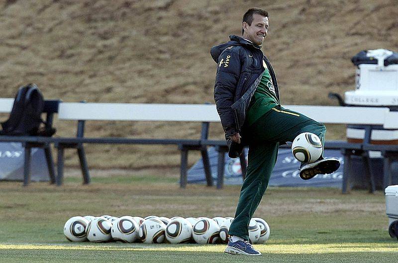Dunga e a brincadeira de esconde-esconde com a imprensa: virou diversão para o técnico.