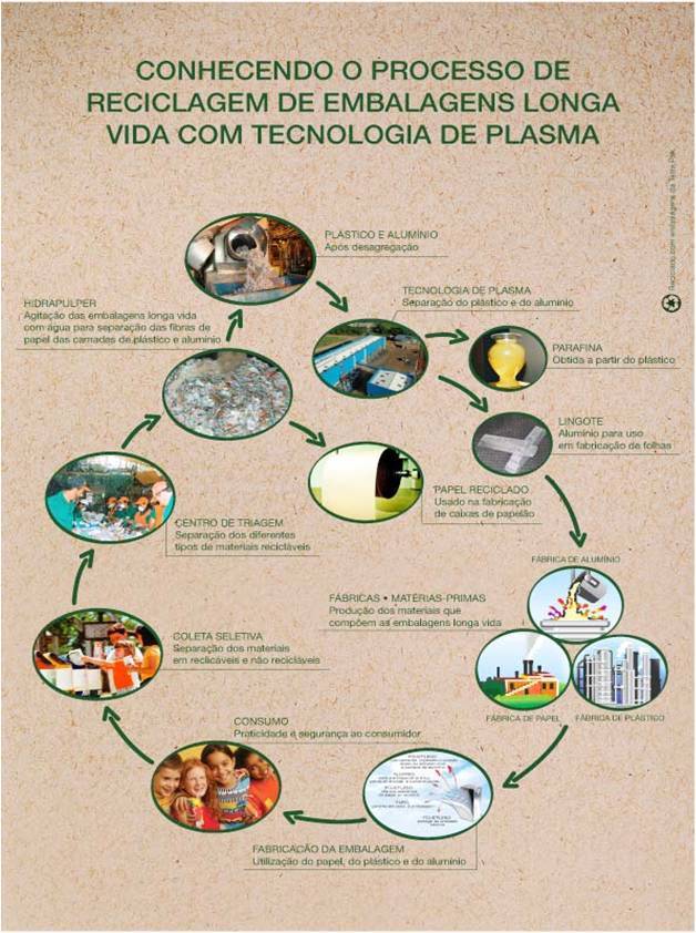 Agora, a novidade (desenvolvida no Brasil!) chama-se Tecnologia de Plasma. A ideia é trabalhar com o processamento do composto de plástico/alumínio em um forno de plasma, em que a mistura de plástico e alumínio é aquecida a altíssimas temperaturas, quebrando o plástico em moléculas e transformando-o em parafina. O alumínio, por sua vez, se funde, tornando-se matéria-prima pura novamente.