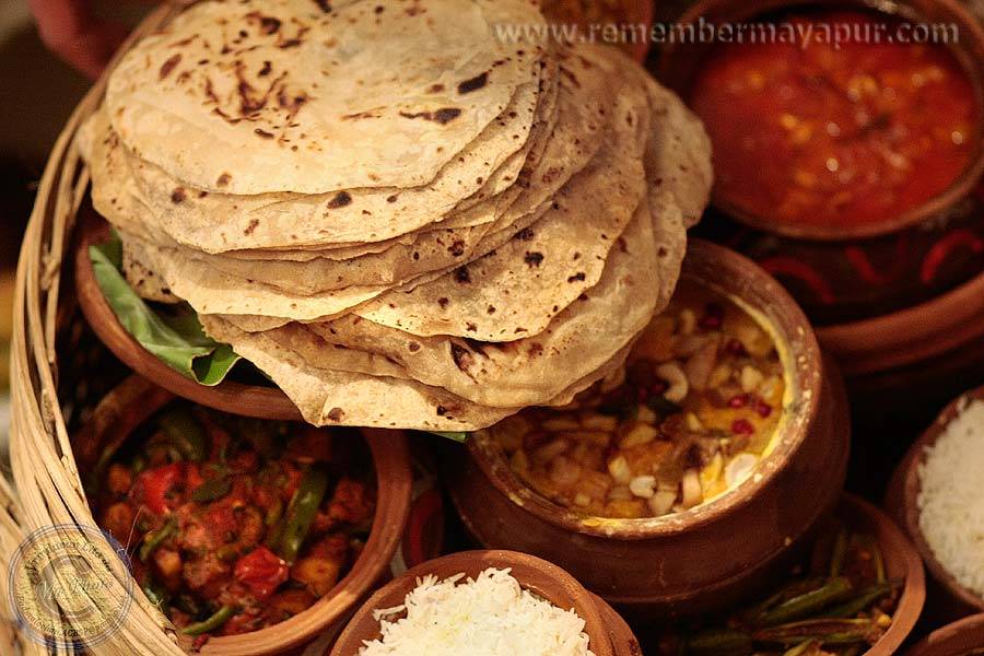 E aqui vai o pulo do gato: na cozinha indiana Hare Krishna, VOCÊ NÃO PROVA A COMIDA – ao menos antes de consagrá-la. Fica lá a foto do moço (Krishna) exposta e só depois de feita a oferenda é que dá pra atacar o dahl, o gulab jamum, a samosa (que eu deixei de associar com o ditador da Nicarágua e passei a associar com fritura), tudo é frito no ghee (manteiga clarificada) e fica uma beleza! Cozinhar sem provar o que se faz é um salto no escuro – nesse caso, um salto de fé. E qualquer religião que tenha por princípio verdadeiramente alimentar quem tem fome, tem a minha simpatia.