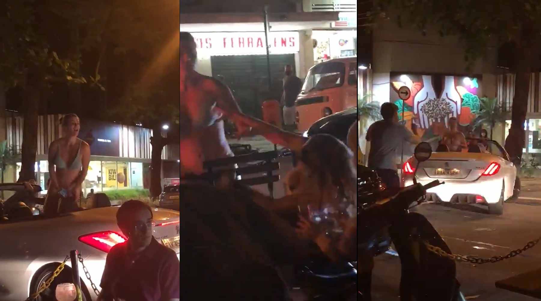 Segue a sinopse. Um carro conversível passa lentamente por uma rua nobre do Rio de Janeiro, e o primeiro impacto é pura engenharia estética: uma mulher de biquíni à noite. Ela se destaca na parte alta do carro, com seu corpão impondo-se aos passantes como um outdoor. Em movimento de sutil sensualidade, a gata se inclina em direção ao condutor do veículo, exibindo ainda mais seus predicados aos inocentes do Leblon.