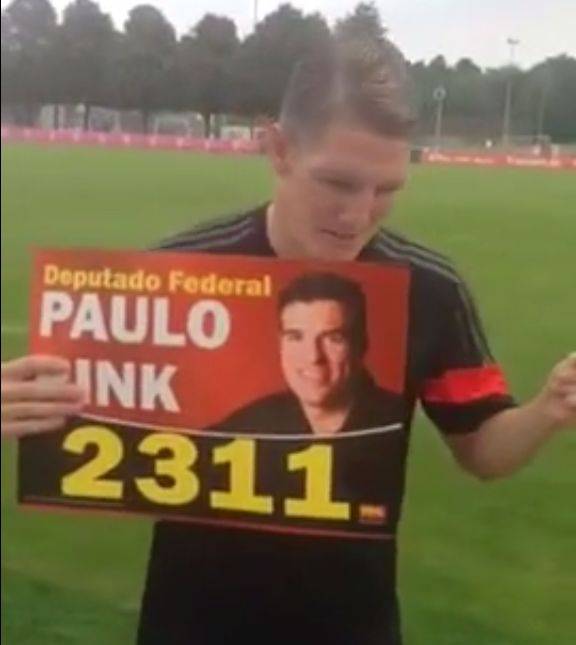 O ex-jogador Paulo Rink, vereador por Curitiba, ganhou um cabo eleitoral de peso na eleição para deputado federal. O meia Bastian Schweinsteiger, campeão mundial pela seleção alemã, gravou dois vídeos pedindo voto para o ídolo atleticano.