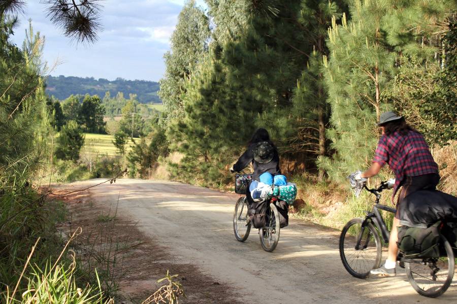 Já Gil deixou seu emprego de engenheiro mecânico e aplicou seus conhecimentos no projeto da viagem. “Tentamos construir, fazer e adaptar tudo aquilo que foi possível com soluções caseiras”, revela Gil, que costurou a mão os alforjes, adaptou o bagageiro dianteiro das bicicletas, fez um par de capas de chuva impermeáveis e arquitetou mais uma dúzia de improvisos que lhes serão úteis durante a viagem.