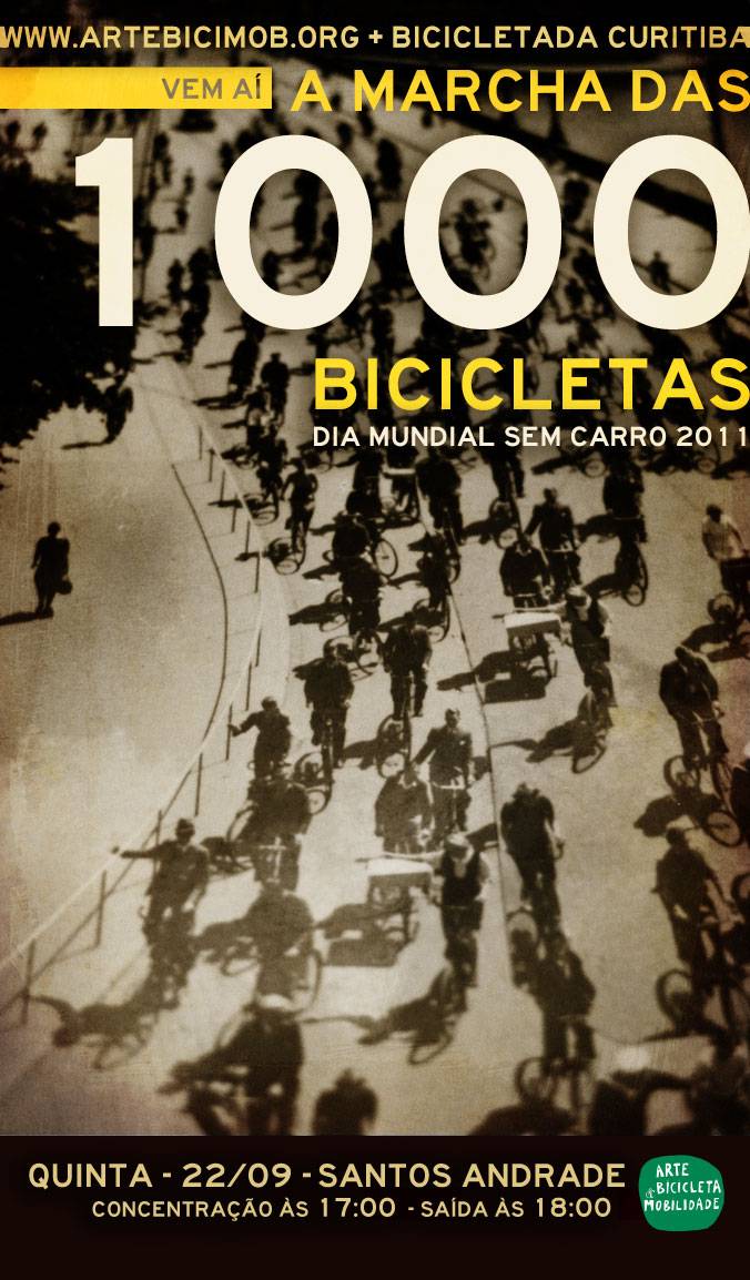 Um grupo de ciclistas de Curitiba realiza hoje a Marcha das 1000 Bicicletas, em comemoração ao Dia Mundial Sem Carro. O evento, que faz parte do movimento Arte, Bicicleta e Mobilidade e marca as ações do mês da bicicleta em Curitiba, pretende demonstrar que essa é uma opção viável para substituir os carros nos meios urbanos.