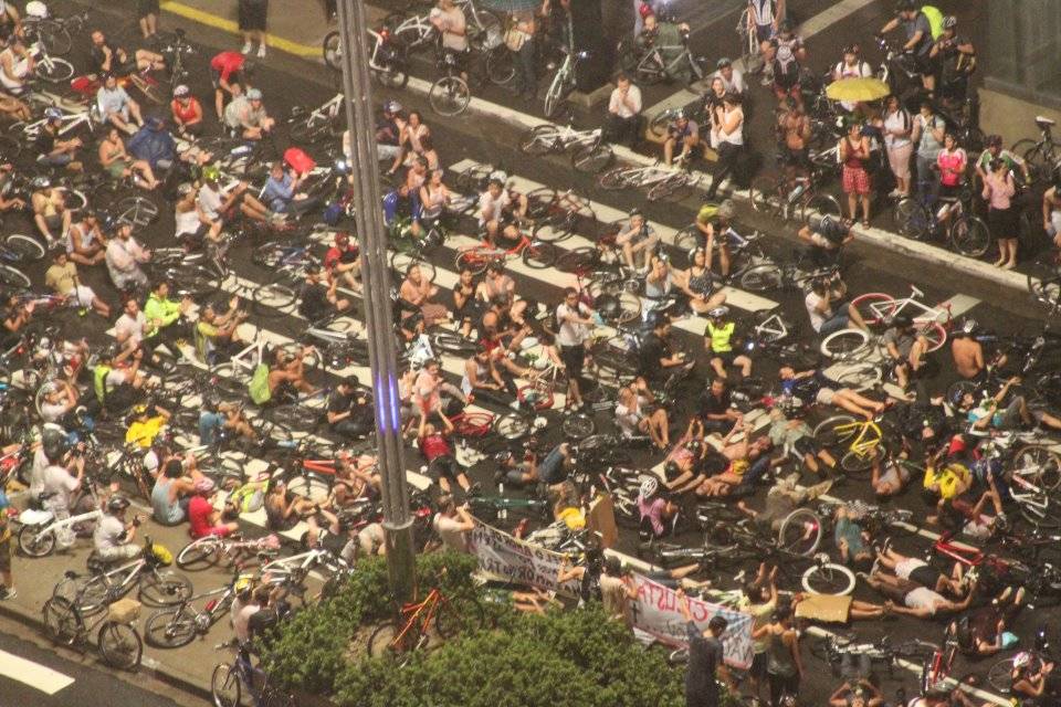 Ciclistas deitam na Av. Paulista em protesto pela morte dos ciclistas: “Quando um morre, todos morrem um pouco”.