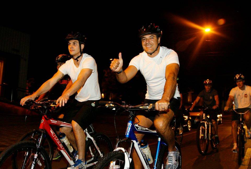 Joínha? Governador Beto Richa pedala ao lado do filho Marcello, secretário municipal de esporte e lazer.