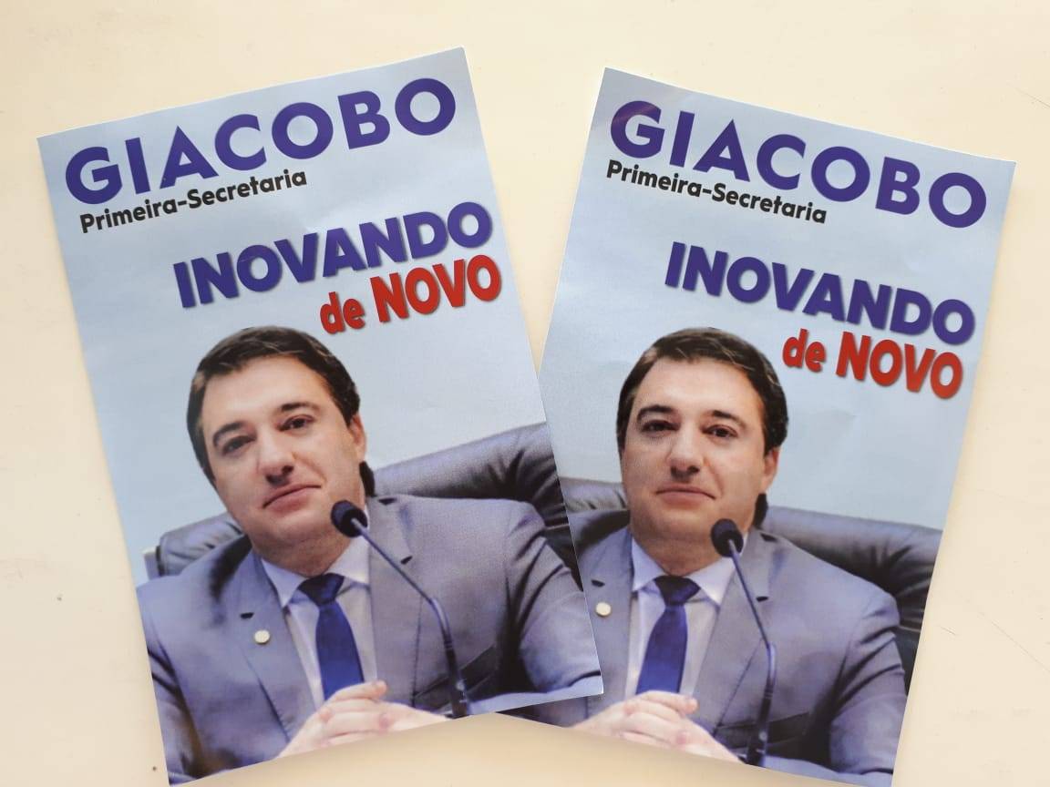 O deputado federal paranaense Fernando Giacobo (PR) é candidato à reeleição para o cargo de primeiro-secretário da Câmara dos Deputados. No posto desde o começo de 2017, Giacobo contratou cabos eleitorais para distribuírem materiais de campanha para os deputados que circulam pelos corredores do Congresso Nacional.