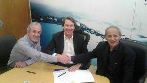 Umberto Crispim (direita), ao lado de Ricardo Soavinski, presidente da Sanepar, e Paulo Dedavid, diretor de Operações (Foto: divulgação/Facebook) (Foto: )