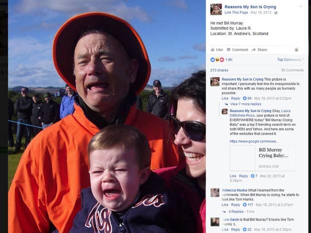 Isso até a foto abaixo ser compartilhada na página Reasons My Son Is Crying (Razões Por Meu Filho Estar Chorando, em português), onde a internauta Laura DiMichele-Ross publica fotos engraçadas de bebês chorando: