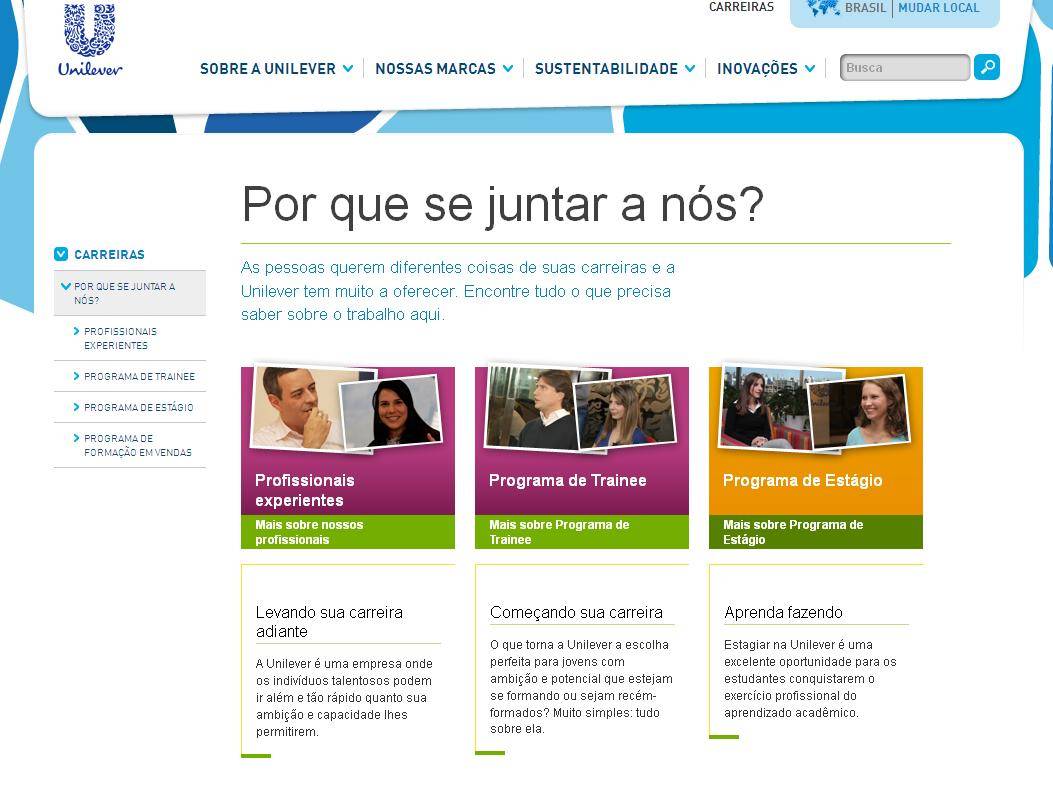 A Unilever recebe até o dia 27 de agosto inscrições de interessados em participar do Programa Trainee 2013. Há vagas nas áreas de Desenvolvimento de Clientes (Vendas), Marketing, Finanças, Recursos Humanos, Tecnologia da Informação, Supply Chain e Pesquisa e Desenvolvimento (R&D).