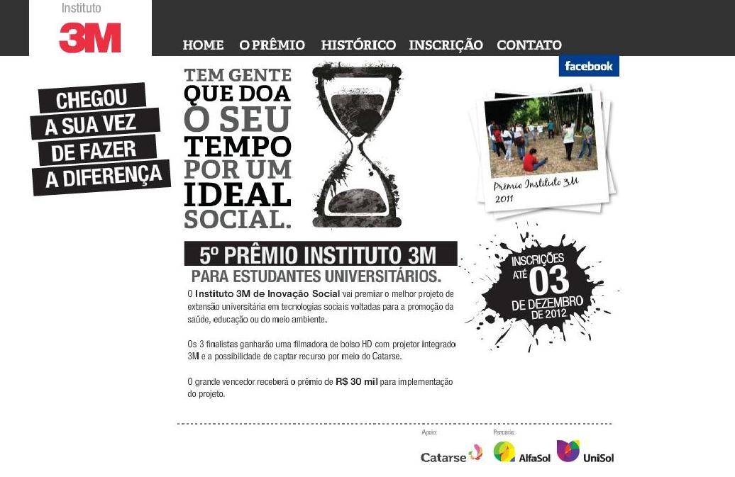 Estão abertas as inscrições para a 5ª edição do Prêmio Instituto 3M para estudantes universitários. O objetivo deste ano é dar visão a novas tecnologias sociais inovadoras voltadas para a promoção da saúde, educação e meio ambiente.