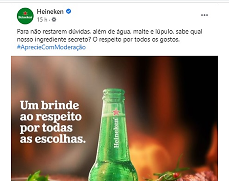 No dia seguinte, a Heineken recuou, mas com outra postagem infeliz, que dizia: “Para não restarem dúvidas, além de água, malte e lúpulo, sabe qual nosso ingrediente secreto? O respeito por todos os gostos”