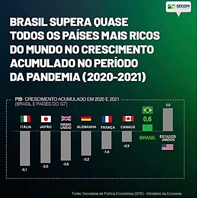 Pois bem, como essa mídia reagiu à informação de que o crescimento agregado da economia brasileira no biênio 2020/2021 foi superior ao da Alemanha, ao da França, ao do Canadá, ao do Japão etc?
