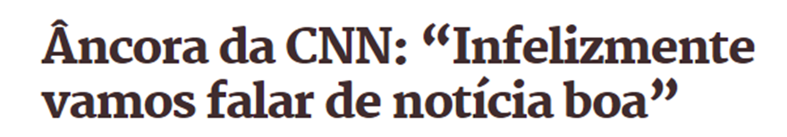 - “Infelizmente, vamos falar de notícia boa” – a criação de 120 mil novos empregos, no caso. A torcida contra o governo é tão explícita que a jornalista sequer percebeu a barbaridade que falou. Infelizmente parta o povo brasileiro, bom mesmo para a mídia seria o aumento do desemprego. E, mais recentemente: