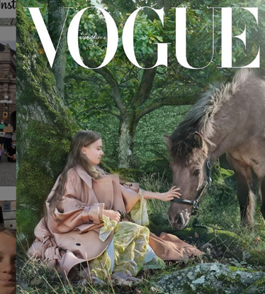 Falando em sair bem na foto, chama a atenção, no Instagram de Greta Thunberg, a imagem abaixo, em que ela aparece na capa da revista “Vogue” fazendo carinho na cabeça de um pônei, em um bosque de conto de fadas, com um figurino pra lá de esquisito.