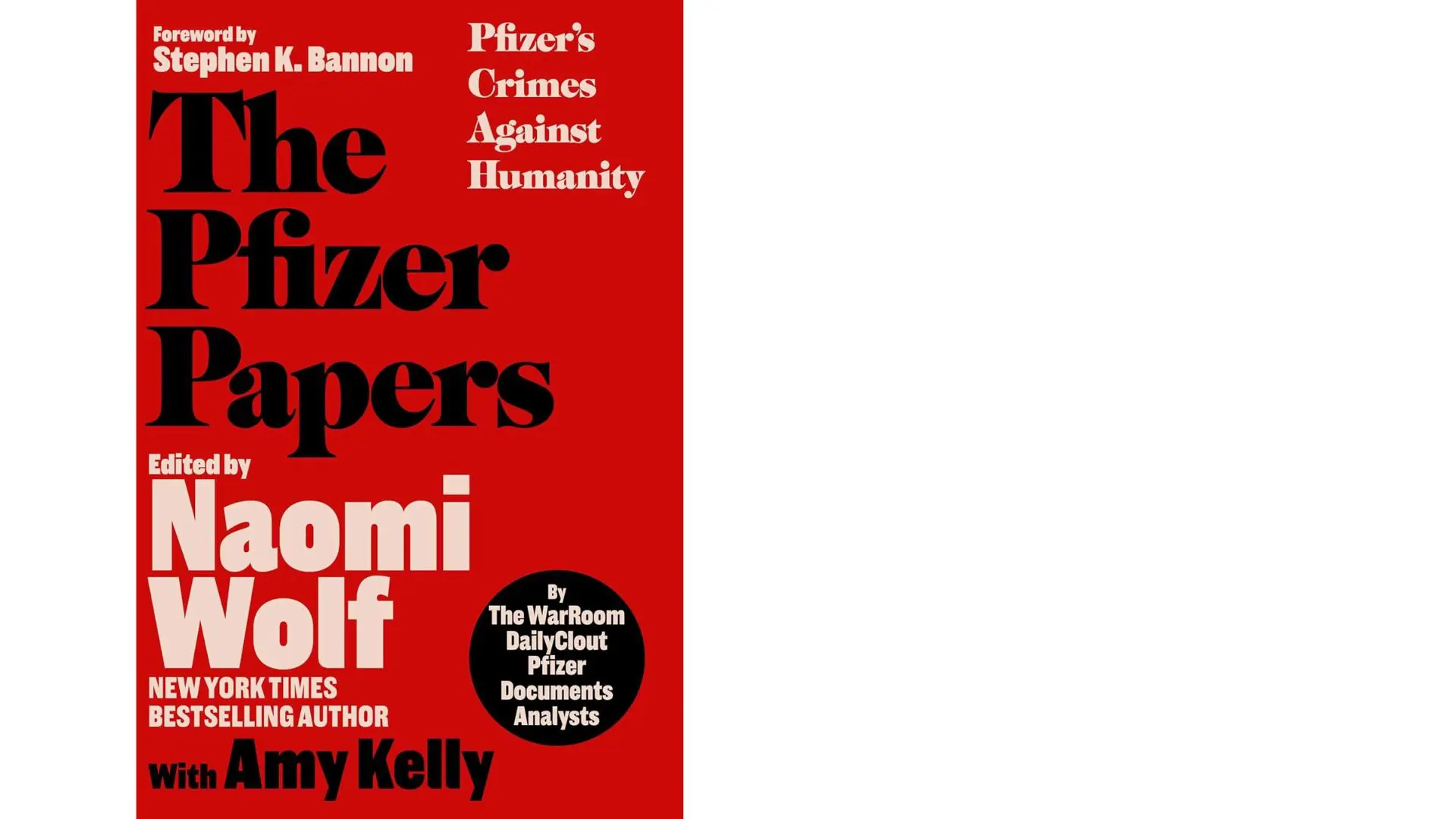 Especificamente sobre a Pfizer, Naomi afirma, entre outras coisas, que a vacina mRNA apresenta elevado risco de danos duradouros em todo o organismo, especialmente no sistema reprodutivo; que uma em cada três mulheres inoculadas com a vacina mRNA teve efeitos colaterais adversos prolongados; que a miocardite induzida pela vacina mRNA não era rara, leve ou transitória, ao contrário do que foi divulgado; e que a vacina mRNA criou uma nova categoria de doença, multissistêmica e multiorgânica, que vem sendo chamada de "Doença CoVax".