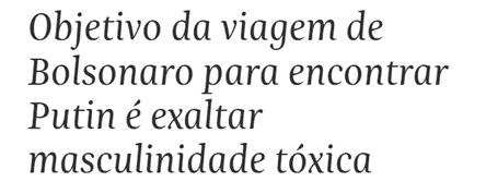“Objetivo da viagem de Bolsonaro para encontrar Putin é exaltar masculinidade tóxica"