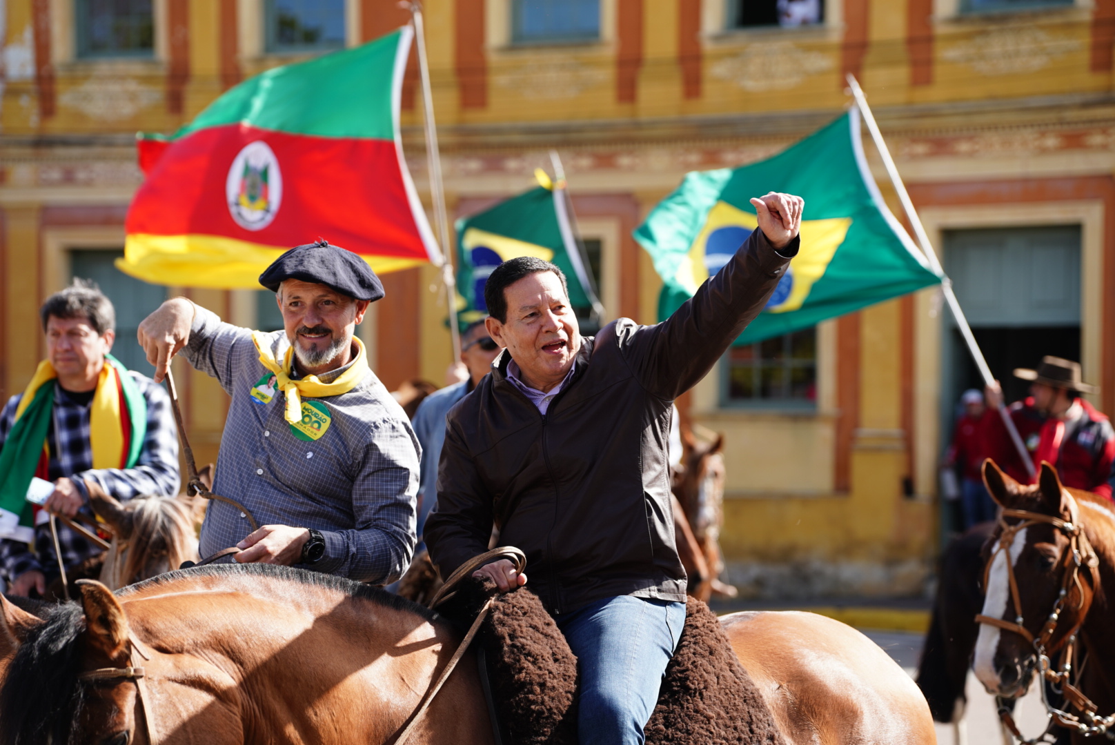 O vice-presidente voou de Canoas para Brasília no início da tarde de segunda (12). Retornou a Porto Alegre na quarta. No dia seguinte, esteve em Alegrete e Rosário, cidades da Fronteira Oeste. Na sexta, participou de comício e cavalgada pelas ruas centrais de São Gabriel, que estava nas comemorações da Semana Farroupilha. A cidade é conhecida como "Terra dos Marechais" – entre eles Hermes da Fonseca e Mascarenhas de Morais, comandante da Força Expedicionária Brasileira (FEB) na Itália. Mourão estava se sentindo em casa. Nesse roteiro mais curto, com equipe de apoio de 23 militares, sendo seis oficiais superiores, as despesas com diárias e passagens somaram R$ 134 mil.