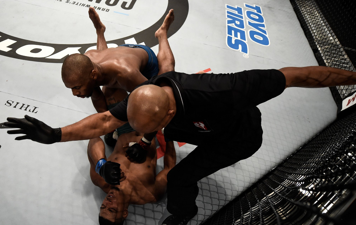 O motivo? Uma joelhada voadora absurda que acabou com o meio-pesado (até 93 kg) Jamelle Jones em apenas 2min15s.
