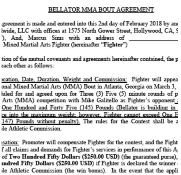O salário garantido seria de US$ 250 (R$ 825) — em caso de vitória ele dobraria o prêmio. Indignado, ele publicou parte do contrato no Twitter.
