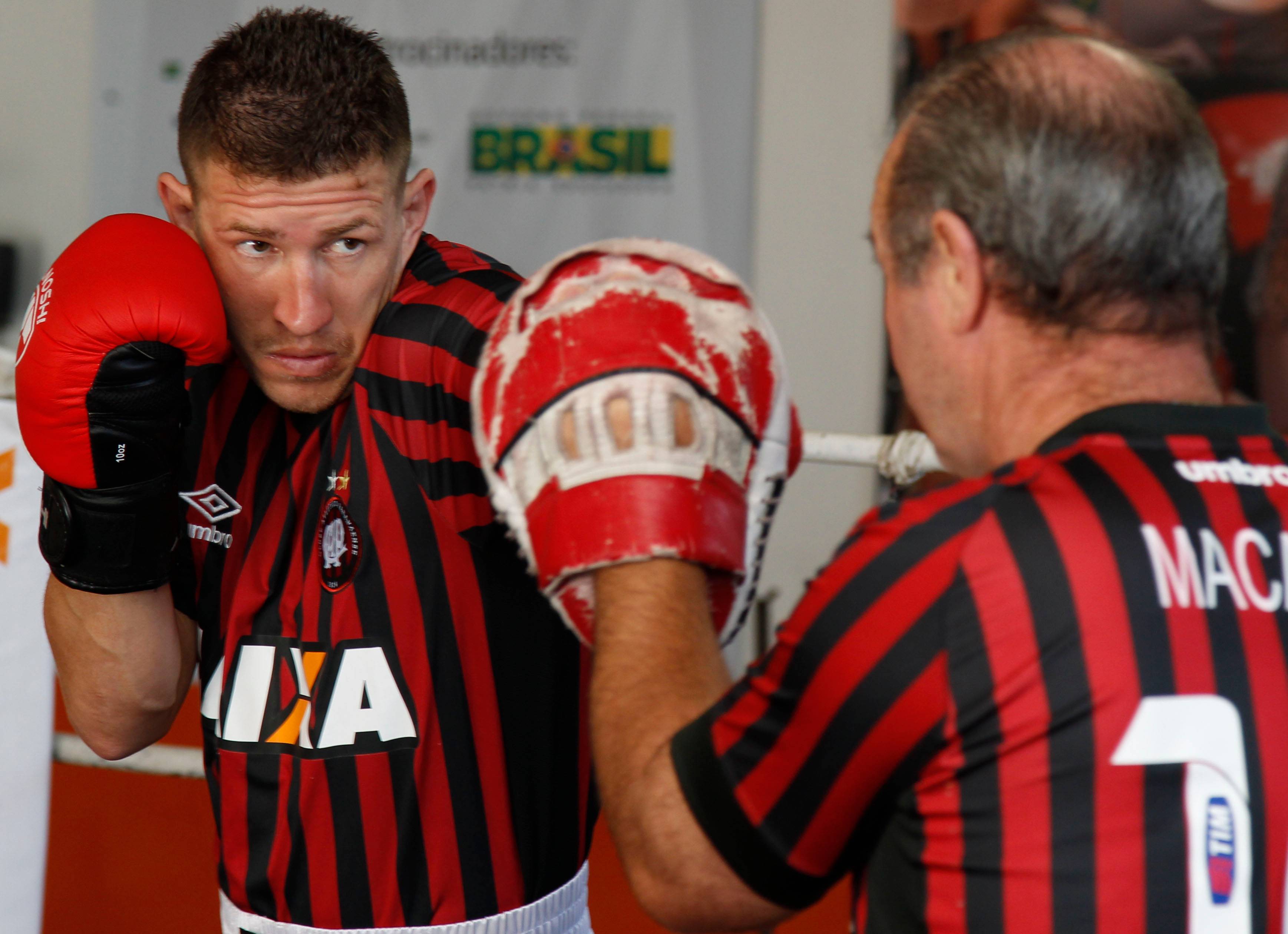 Pedroso, que não é um ferrenho fã de futebol, tem ido aos jogos do clube com o técnico, este sim um fanático torcedor. “Eu gosto mesmo é de boxe”, admite Pedroso. “Mas tenho ido à Arena com o Macaris. Vamos fazer uma homenagem ao Atlético, usar a camisa na entrada, com o hino também, meu calção é vermelho. Não temos apoio do clube, mas quem sabe chamamos a atenção”, diz o azarão.