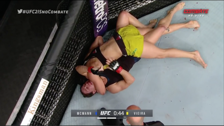 Depois de tomar diversas cotoveladas na cabeça no primeiro round da luta contra Sarah McMann, a lutadora da Nova União conseguiu uma grande virada no segundo round. Com um katagatame, ela finalizou a rival dez anos mais velha, uma medalhista olímpica no wrestling em Atenas-2004.