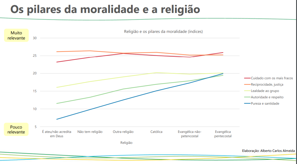 Para não ficar no campo da subjetividade, a pesquisa levou em conta os 5 pilares morais propostos pelo psicólogo social norte-americano Jonathan Haidt, professor da New York University, que se dedica a pesquisar a base da moralidade nas mais diversas culturas. Recentemente, ao escrever sobre política, tornou-se um best seller com a obra: "A Mente Moralista - por que pessoas boas se separam por causa da política e religião?".