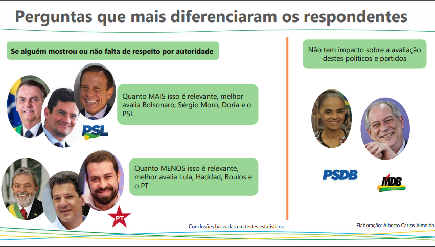 Na pesquisa aqui no Brasil, que representa principalmente o que pensam pessoas com nível superior, os valores morais foram relacionados a partidos e personalidades políticas. Ainda que você discorde dos resultados, temos ali a consolidação da imagem tanto dos líderes quanto das instituições. E temos também a revelação de que algumas personalidades conhecidas ainda são um mistério em termos morais.