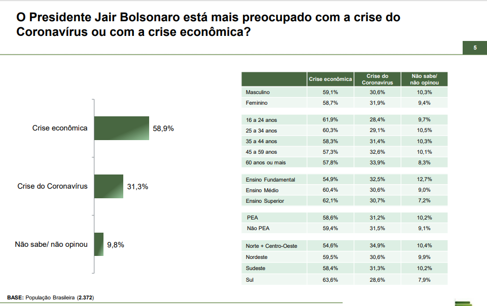 2. O Presidente Jair Bolsonaro está mais preocupado com a crise do Coronavírus ou com a crise econômica?