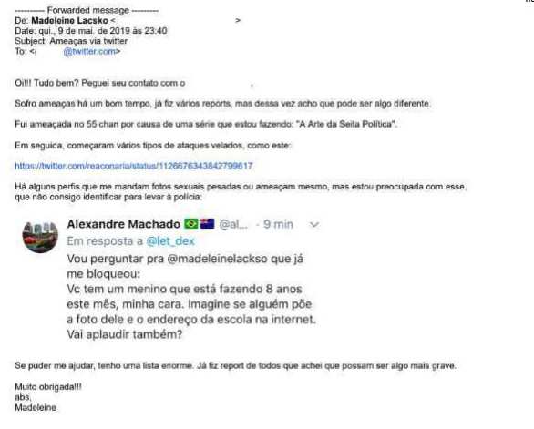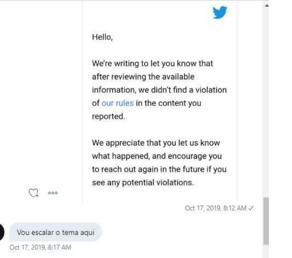 Conto a história desde o começo do nosso fim, em 2017, justamente quando Joselito Müller e eu nos conhecemos em circunstâncias tão amistosas. Justamente nessa época, o Twitter começava a ficar cada vez mais envolvido com más companhias e cada vez mais cheio de desculpas esfarrapadas diante do estrago que elas causavam. Tentei de tudo. Conversei com os diretores, amigos apelaram fazendo reportagens contando meu caso e, no final das contas, só me restaram a polícia e o juiz. Nem assim o Twitter entra na linha.