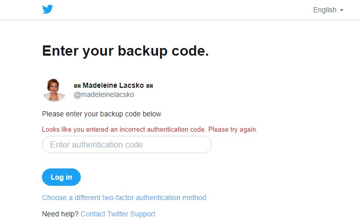 Ali, na mensagem automática, o Twitter me diz que tenho outra alternativa, a chave mestra que ele me deu nos bons tempos dizendo que abriria seu coração por toda a vida. Trata-se de uma senha mandada ao meu e-mail para postar caso falhe o envio de mensagem da verificação em duas etapas. Tentei. Nada.