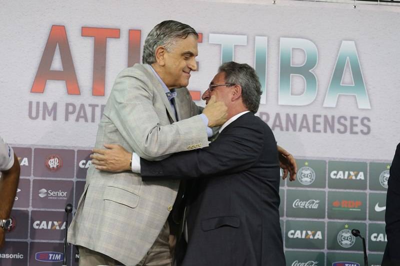 Mario Celso Petraglia e Rogério Bacellar se tornaram os “amigos de fé, irmãos camaradas” do futebol paranaense. Talvez como nunca, os dois deixaram a rivalidade de lado e Atlético e Coritiba abraçaram bandeiras importante, como a saída da Primeira Liga, Atletiba na web, Esporte Interativo etc.