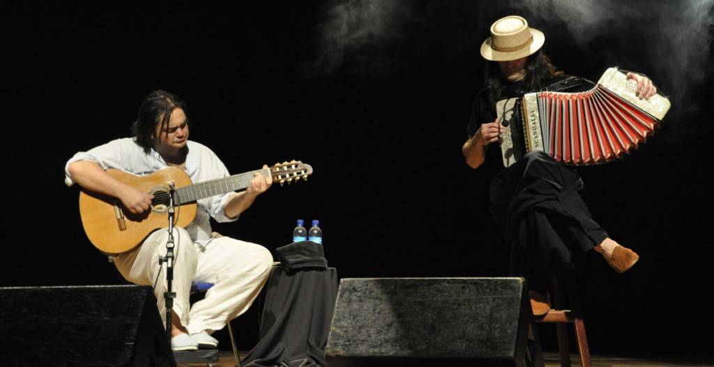 Yamandu Costa, bastante expressivo consegue acentuar o som do violão de sete cordas tocando choro, bossa nova, milongas, tangos, zambas e chamamés e Renato Borghetti, considerado um dos mestres da tradição da música gaúcha, preparam um repertório diferenciado para o público. O espetáculo parte de estilos de percussão, tanto na música brasileira, quanto na música americana.