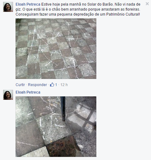 Neste post, integrantes da Frente Acorda Cultura dizem que o chão do Solar do Barão já se encontrava riscado antes de sua intervenção.