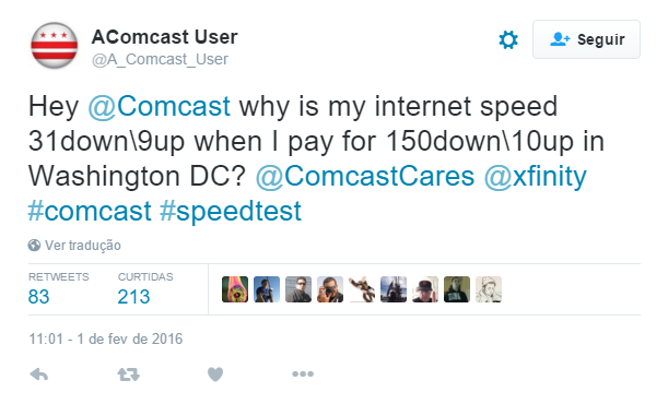 Um usuário do Reddit criou um programa que faz uma reclamação automática no Twitter cada vez que sua internet fica lenta. A reclamação é feita para a conta da operadora no microblog.