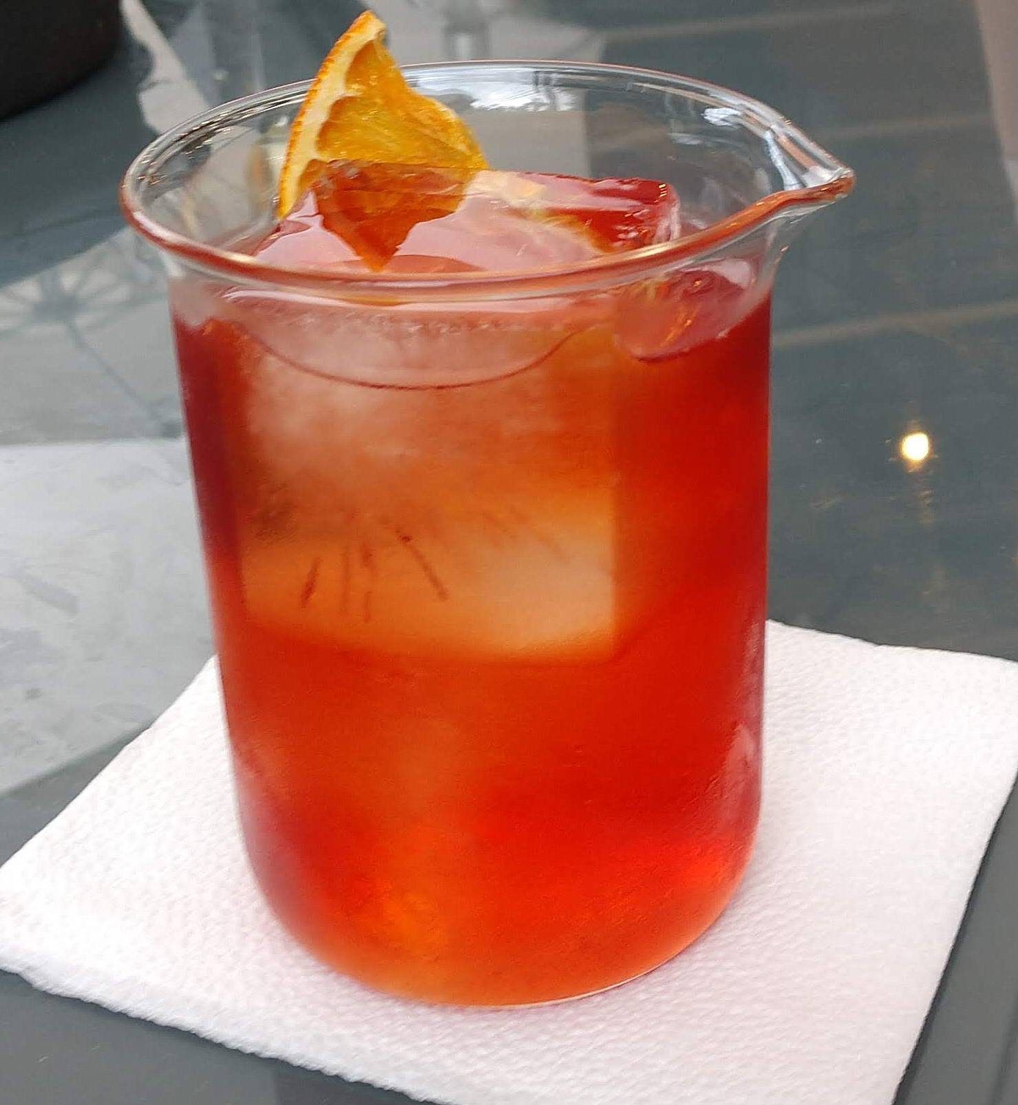 Mas também tem um drinque da casa, criação da bartender Cissa Mariah. É o Vive La Vie, composto por Lillet Blanc, água tônica, laranja desidratada e morango glaceado. Aliás, Cissa é fera na área, pois, quando soube que eu apreciava Negroni, tratou prontamente de providenciar um, que tem um detalhe específico: canela defumada. Sim, ela põe fogo na rama de canela e depois cobre com o copo por alguns instantes, para armazenar fumaça. Daí prepara o drinque de acordo com as medidas padrões e despeja no copo. O resultado é ótimo, ficando no ar aquele agradável perfume de canela queimada. E o Negroni também se dá bem com as ostras.