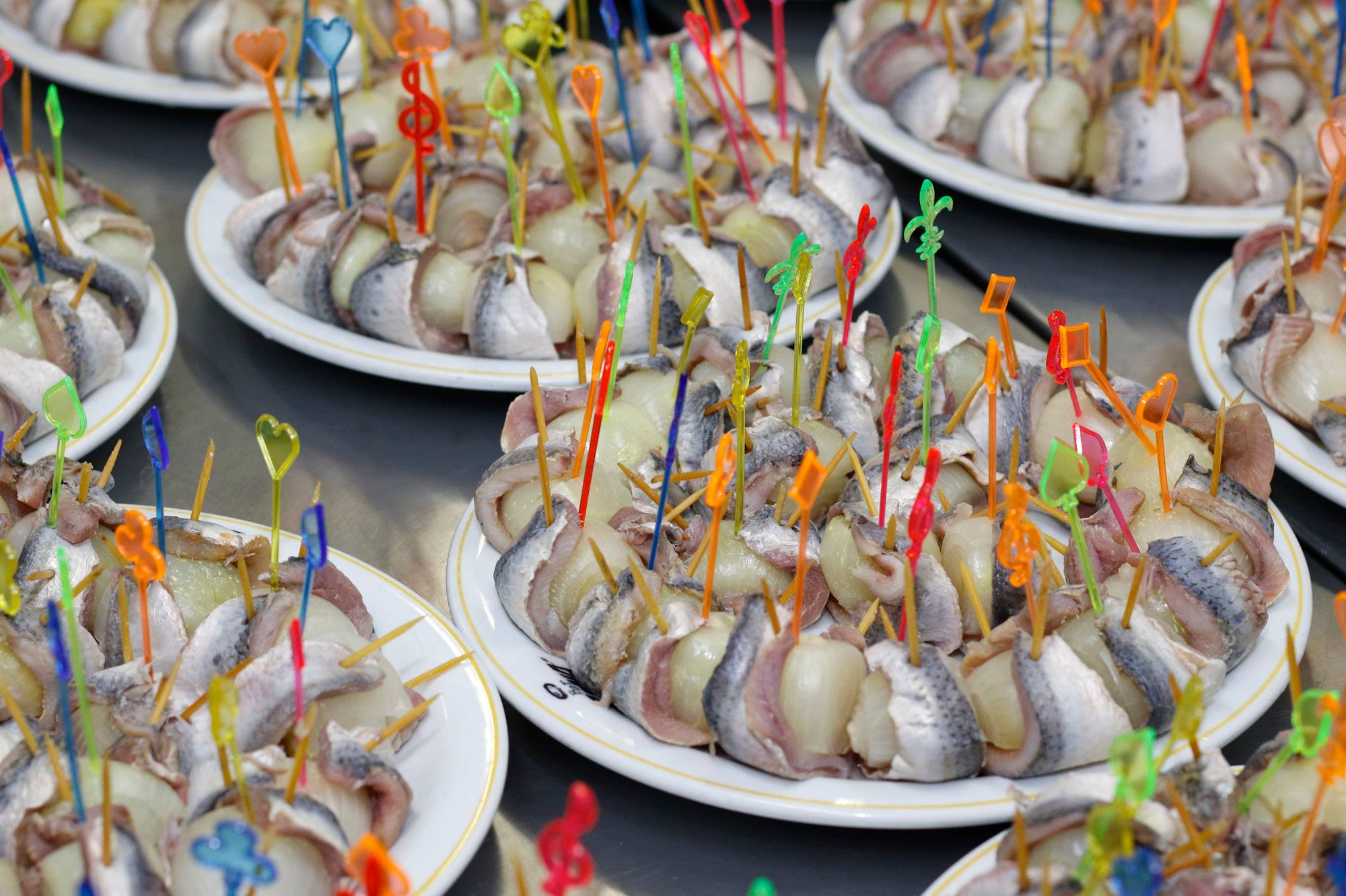 O rollmops é um acepipe de origem germânica, feito com arenque, um peixe encontrado apenas nas águas do Atlântico Norte. No Brasil, ele é servido com algumas adaptações, especialmente no sul do País.