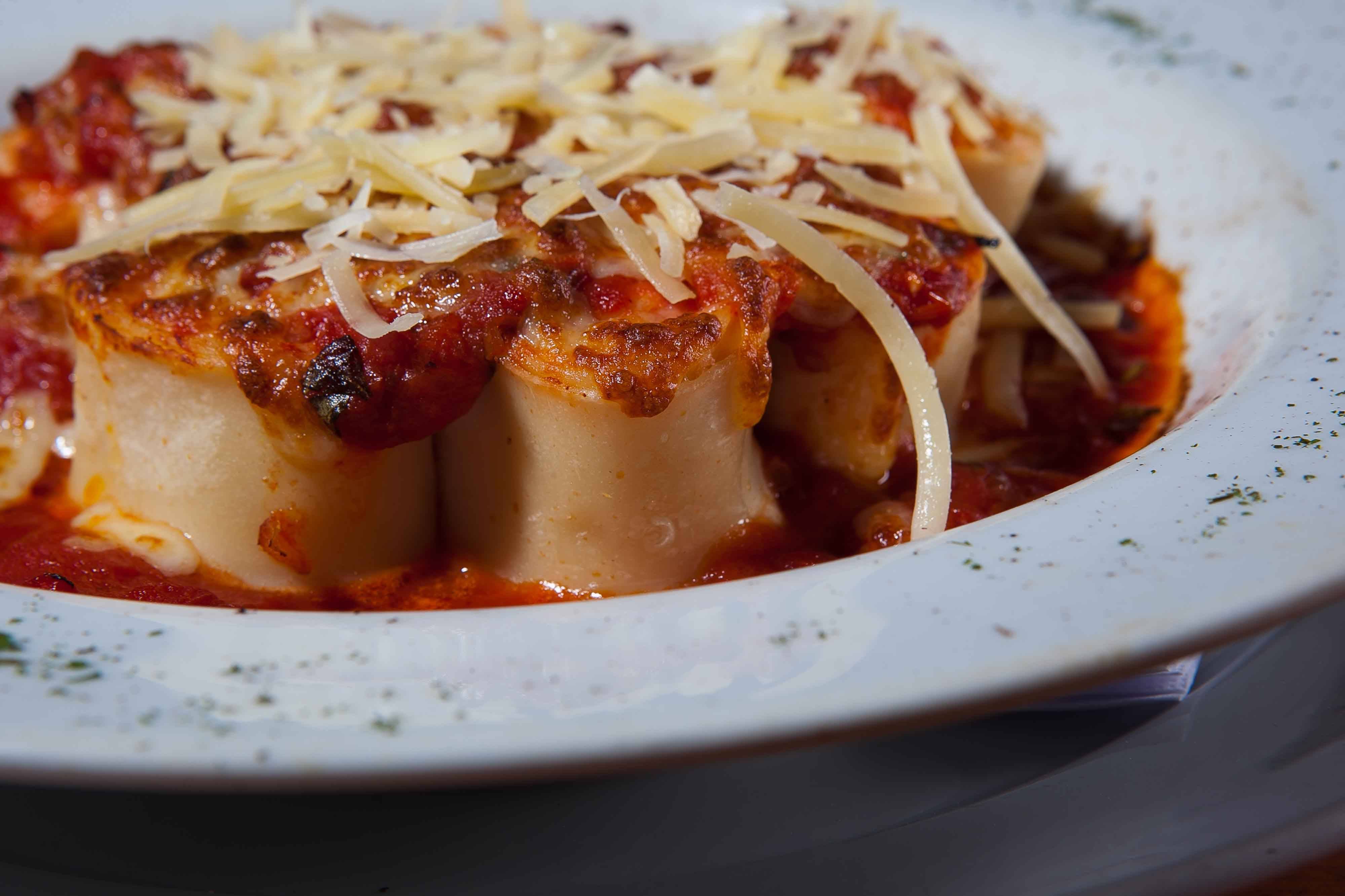 Lasanha Rolls (rolinhos de lasanha de presunto, mussarela e ricota ao molho de tomate cobertos com mussarela, queijo parmesão e salsinha), novidade na Pizza Hut.