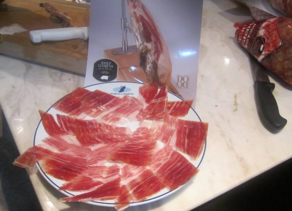 Jamón Ibérico fatiado na degustação da Porto a Porto. De derreter na boca.