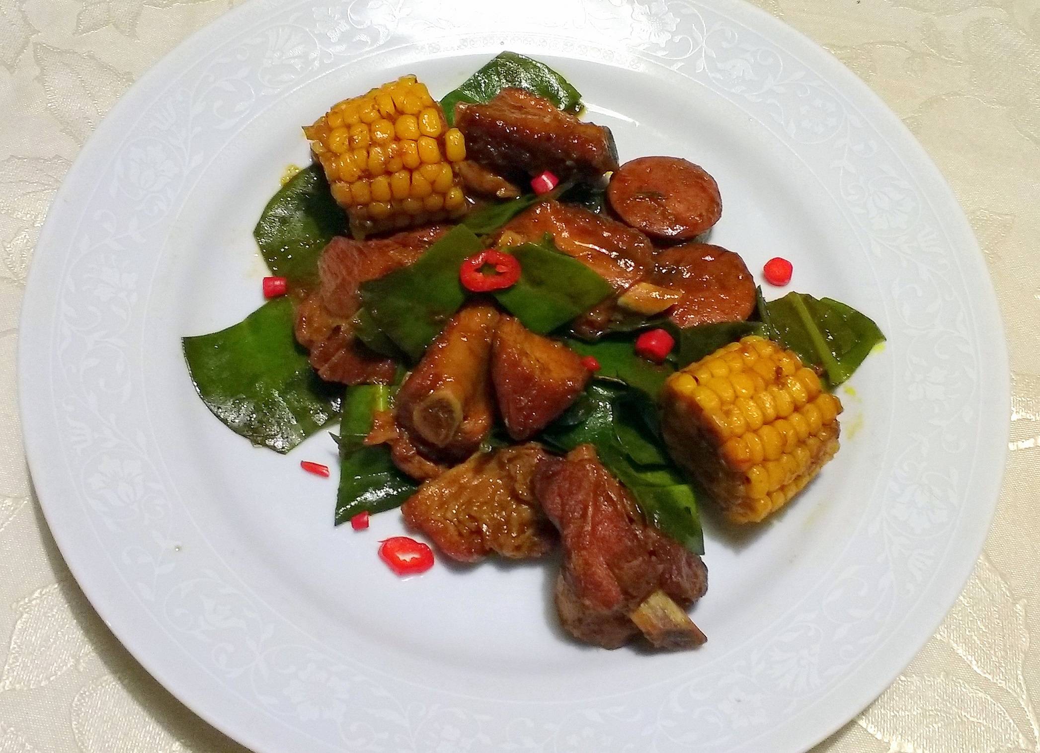 Costelinha com ora-pro-nóbis, linguiça e milho verde