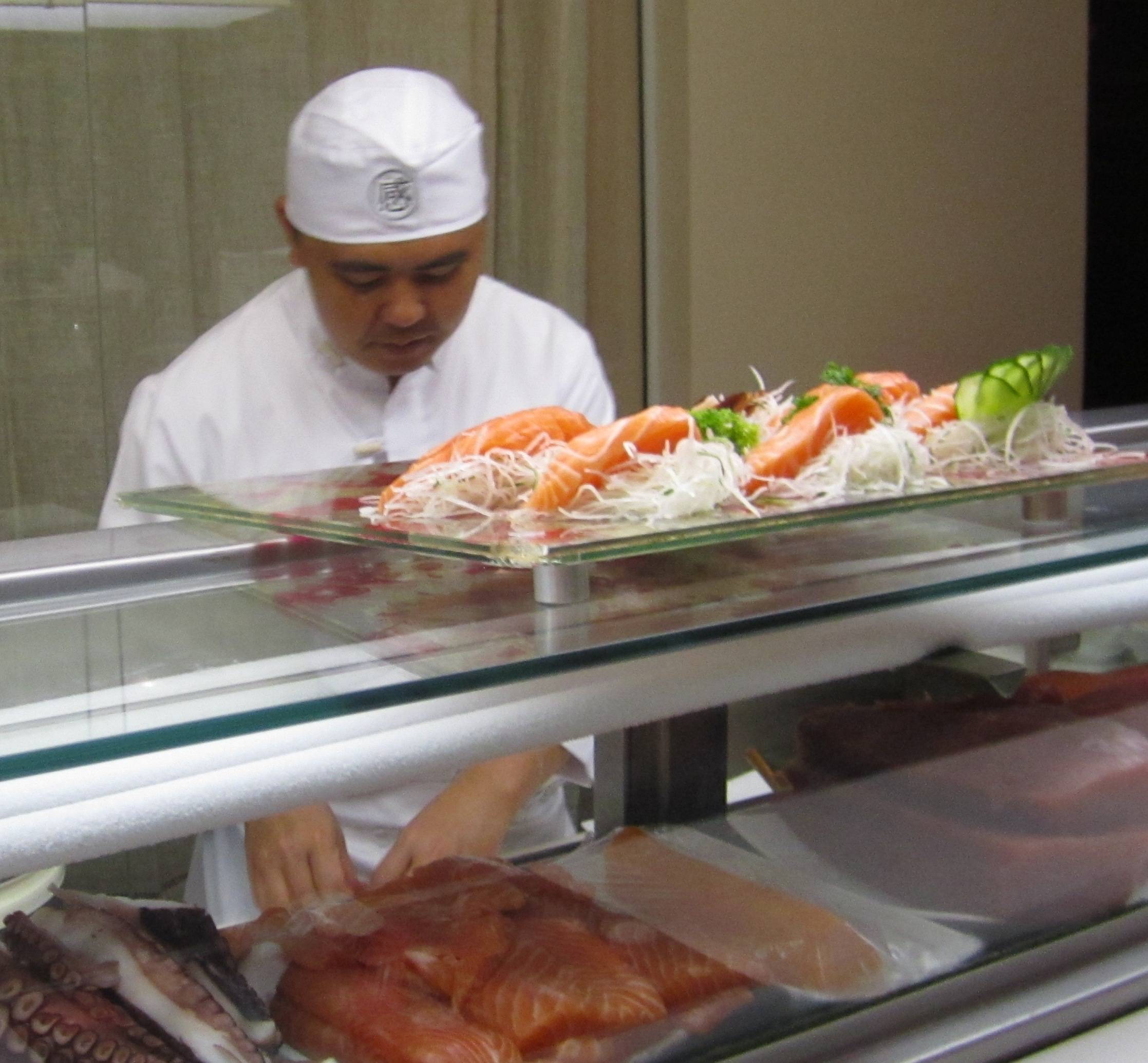 Luciano Mitiharu Kawano, o sushiman-chef do Kan, em plena atividade.