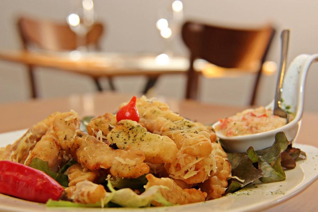 Iscas de tilápia à doré com queijo colonial e molho tártaro – novidade no cardápio de petiscos do Dona Dulce.