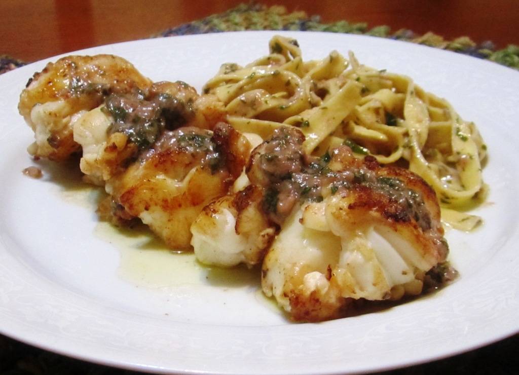 Pedi uma só, para surpresa dos peixeiros (ela é bem menor que a outra). Era só para mim mesmo e a cauda tem carne suficiente para o preparo que de momento imaginei. Quanto custou? R$ 30. Mais uma coisinha para os complementos e o custo total do prato não ficou muito acima disso. Arrisco dizer: abaixo dos R$ 40. Mesmo com o toque de manteiga com trufas de um vidro que já tinha aberto na geladeira.