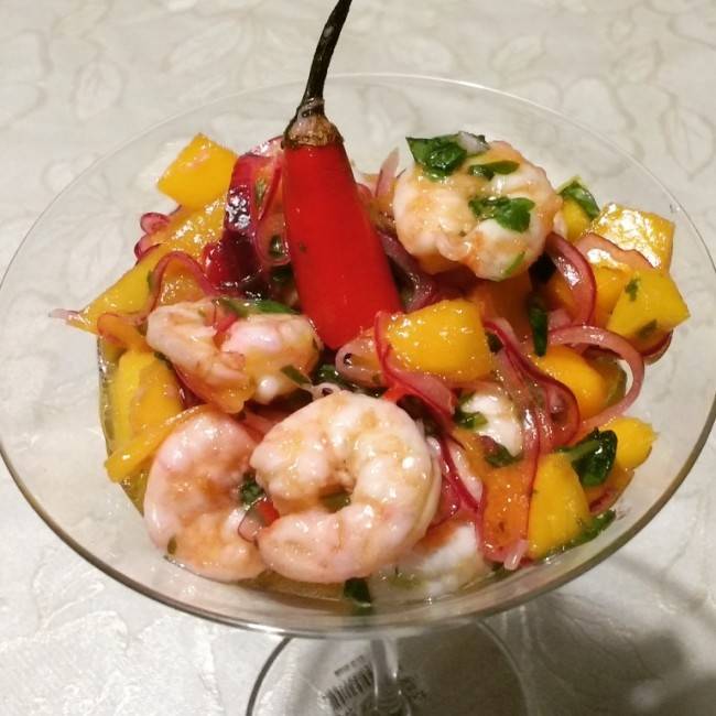 Ceviche de camarão e manga. (Foto/ Anacreon de Téos)