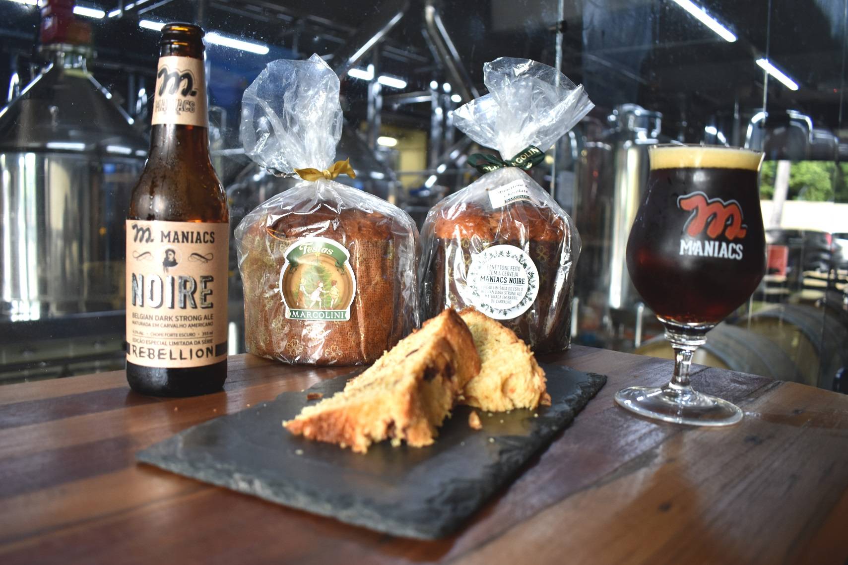 Sim, Marcolini desenvolveu uma receita de panetone com a cerveja Noire, da linha Rebellion, da Maniacs Brewing Co., fruto de uma parceria alinhavada por ele com a premiada cervejaria curitibana.