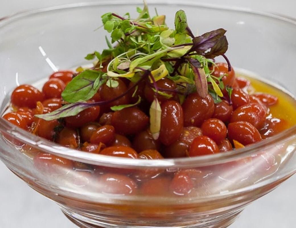 E desta vez o prato principal vem com opcional de entradas, um Trio de antepastos, com Berinjela no azeite de oliva estra virgem com pistache, Confit de tomatinhos com limão siciliano e Tapenade de azeitonas. Acompanha, ainda, uma baguete de fermentação natural.