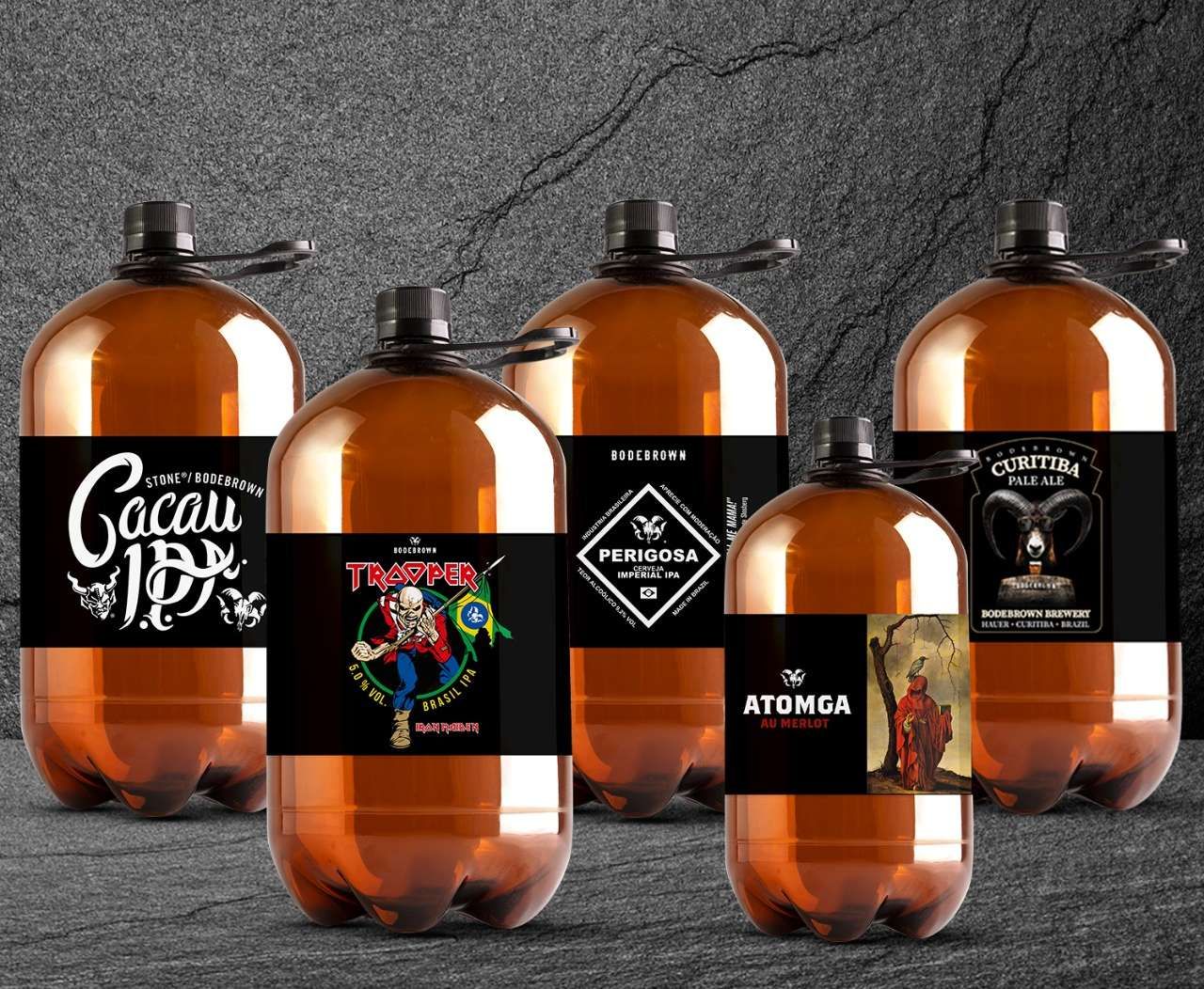 A Trooper Brasil IPA, criada em parceria com a banda Iron Maiden, é uma India Pale Ale com DNA brasileiro, graças a adição de cacau proveniente de Ilhéus, na Bahia. Outra colaboração internacional, a Cacau IPA se transformou num clássico da Bodebrown, tendo sido elaborada em dobradinha com a norte-americana Stone Brewing.