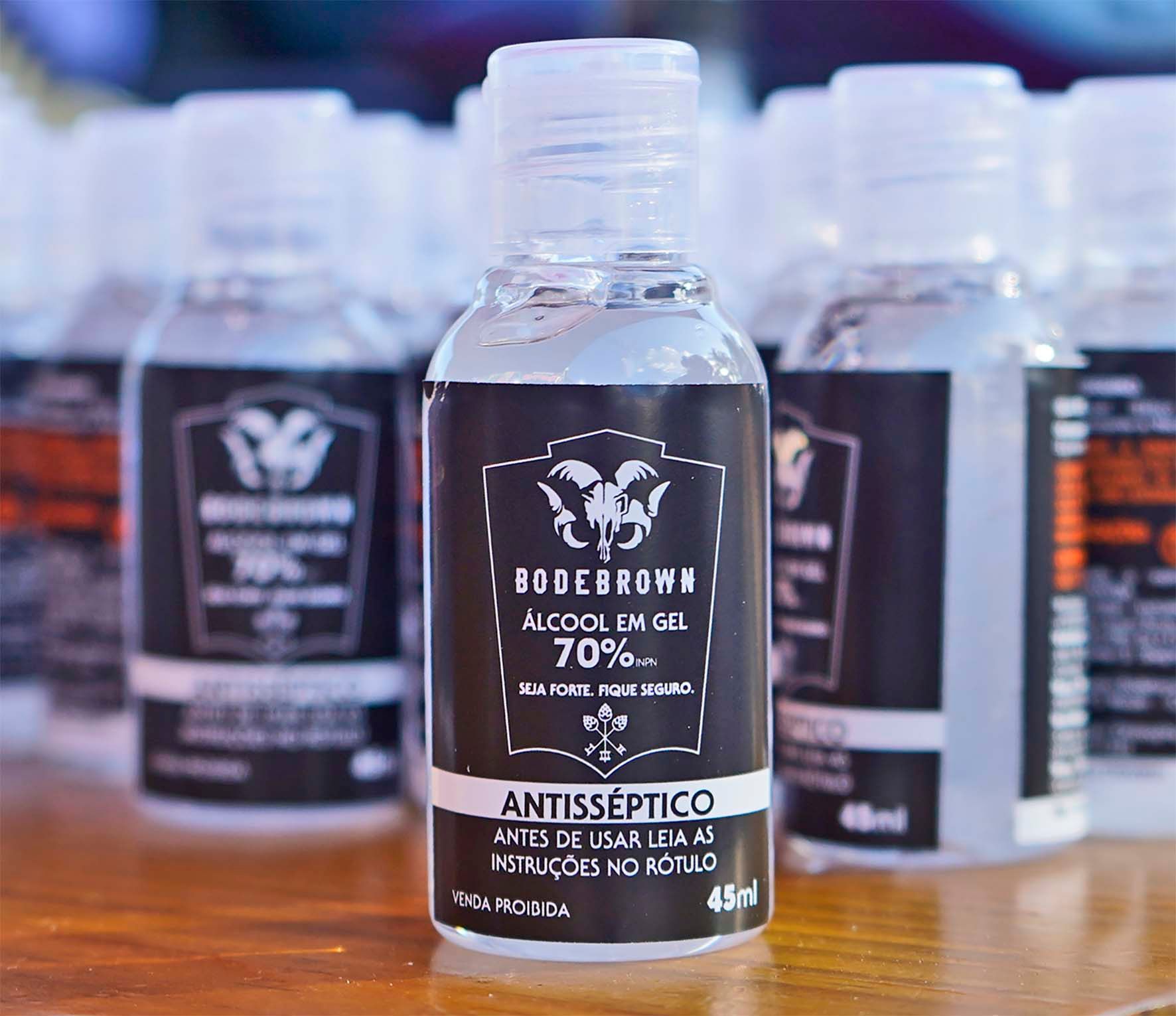 A compra de qualquer growler garante, de brinde, uma garrafinha de 45 ml de álcool em gel da Bodebrown.