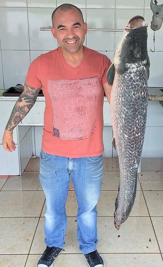 Ivan Lopes e o pirarucu de Miracatu. (Foto/ Divulgação)